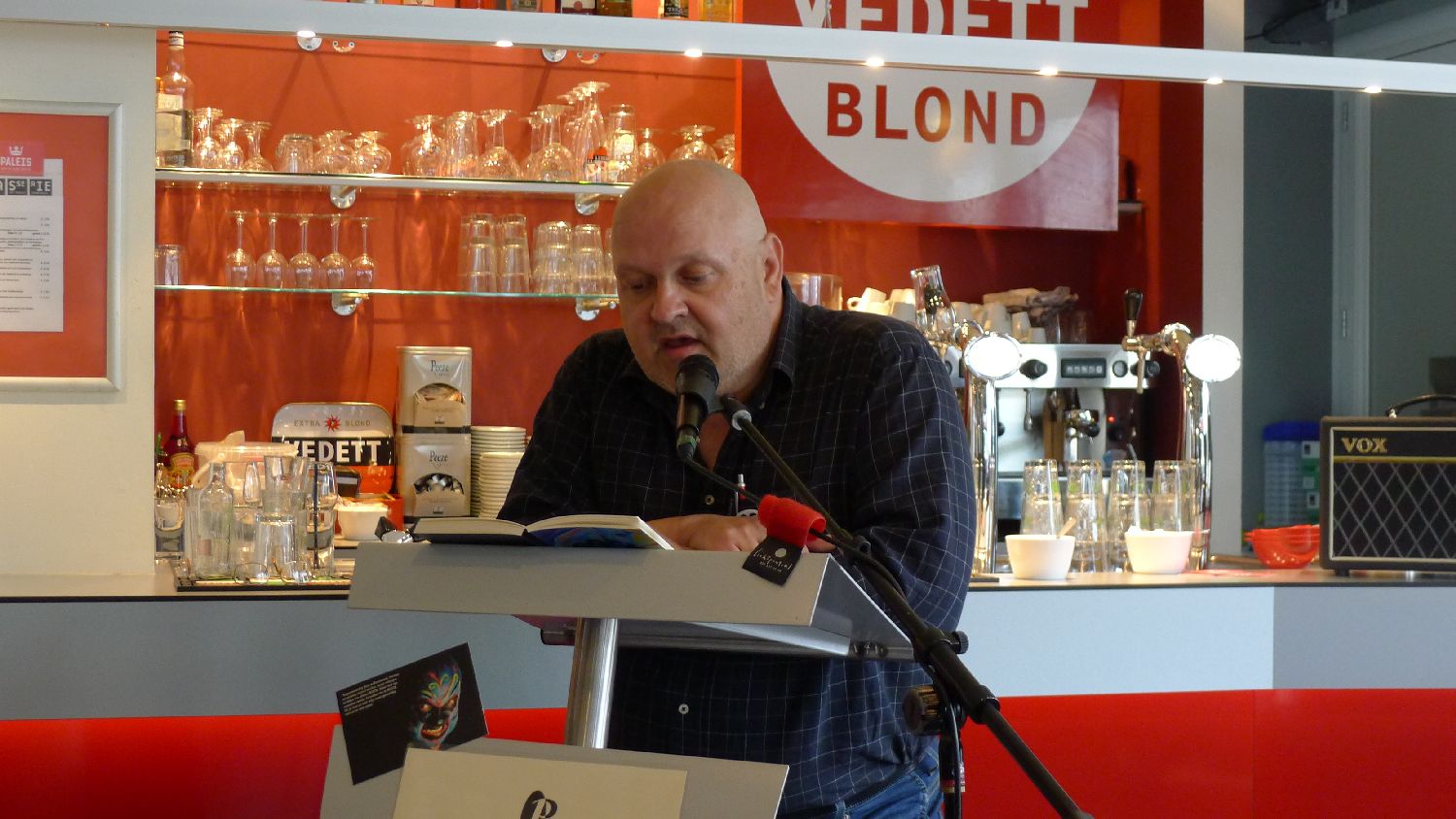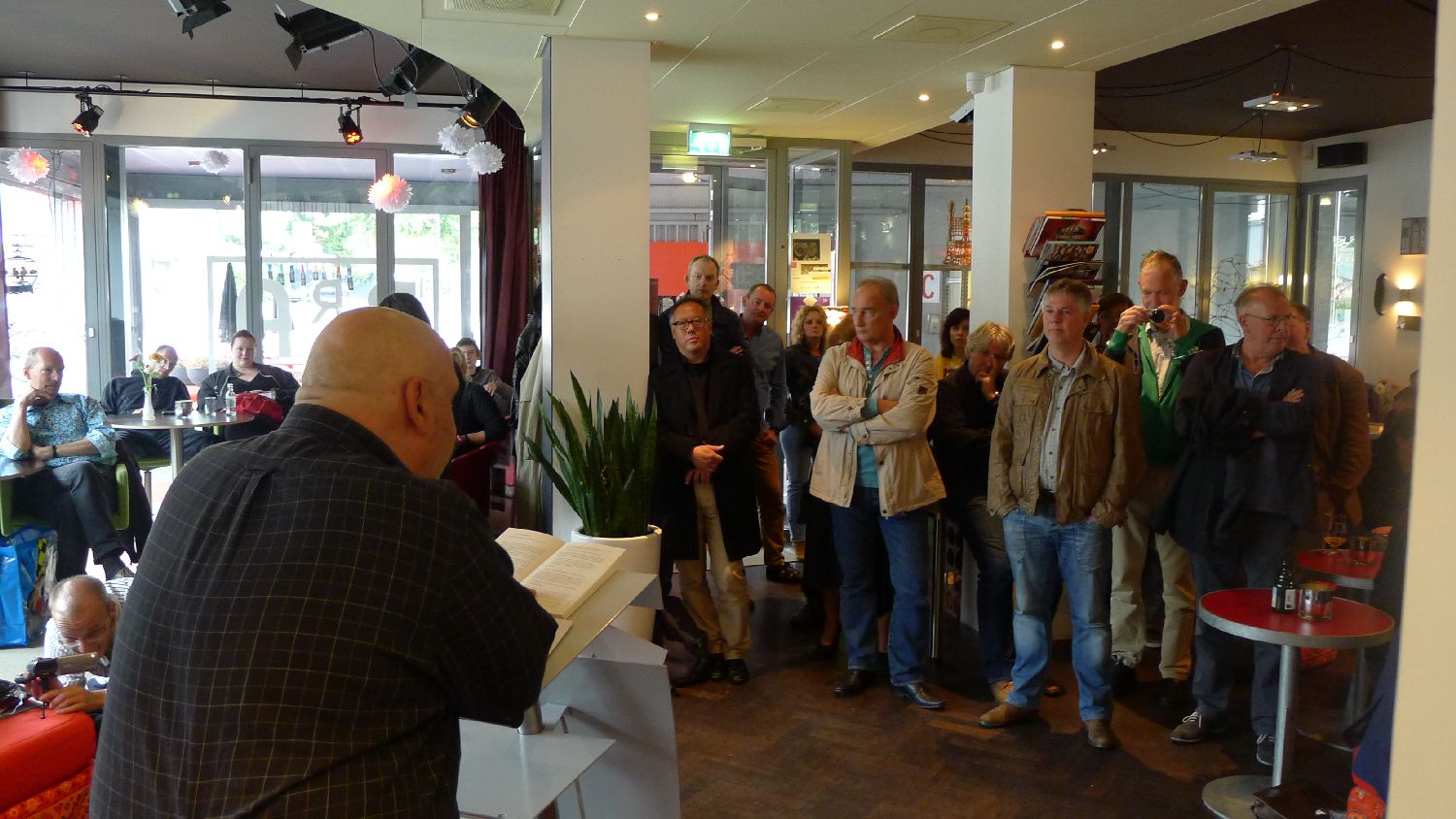 Maar uiteindelijk moest Mensema zelf aan de bak. Hij knakte direct zijn eerste exemplaar in de rug en legde die voor zich om onvoorbereid een stuk voor te lezen.