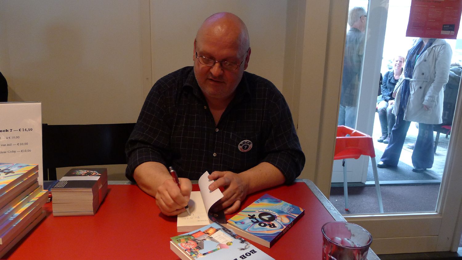 De zenuwen van de schrijver/zanger waren volledig voorbij toen hij aan de signeertafel zat. In de verte zagen we een schaal bitterballen voorbij gaan. We namen een glas witte wijn en keken naar de gestaag vallende regen buiten. Er kwamen allerlei tedere gevoelens boven. Die Bill Mensema was ook een fijne beer. Toen keken we naar de achterflap en schrokken ons een hoedje.
