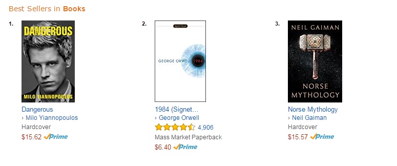 Nieuws: 1984 op twee in bestsellerlist, net achter aartsconservatieve homo Milo Yiannopoulos