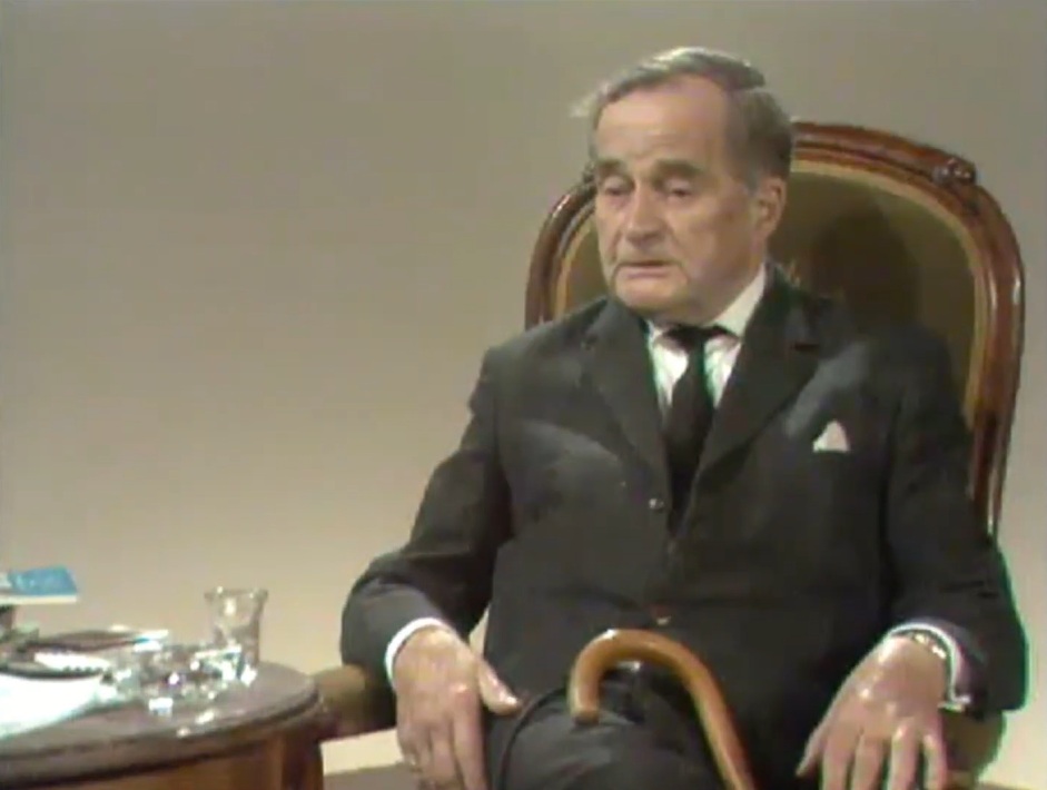 Emmy Huf interviewt dichter Adriaan Roland Holst (1888-1976). Een bijrolletje voor A.L. Sötemann.