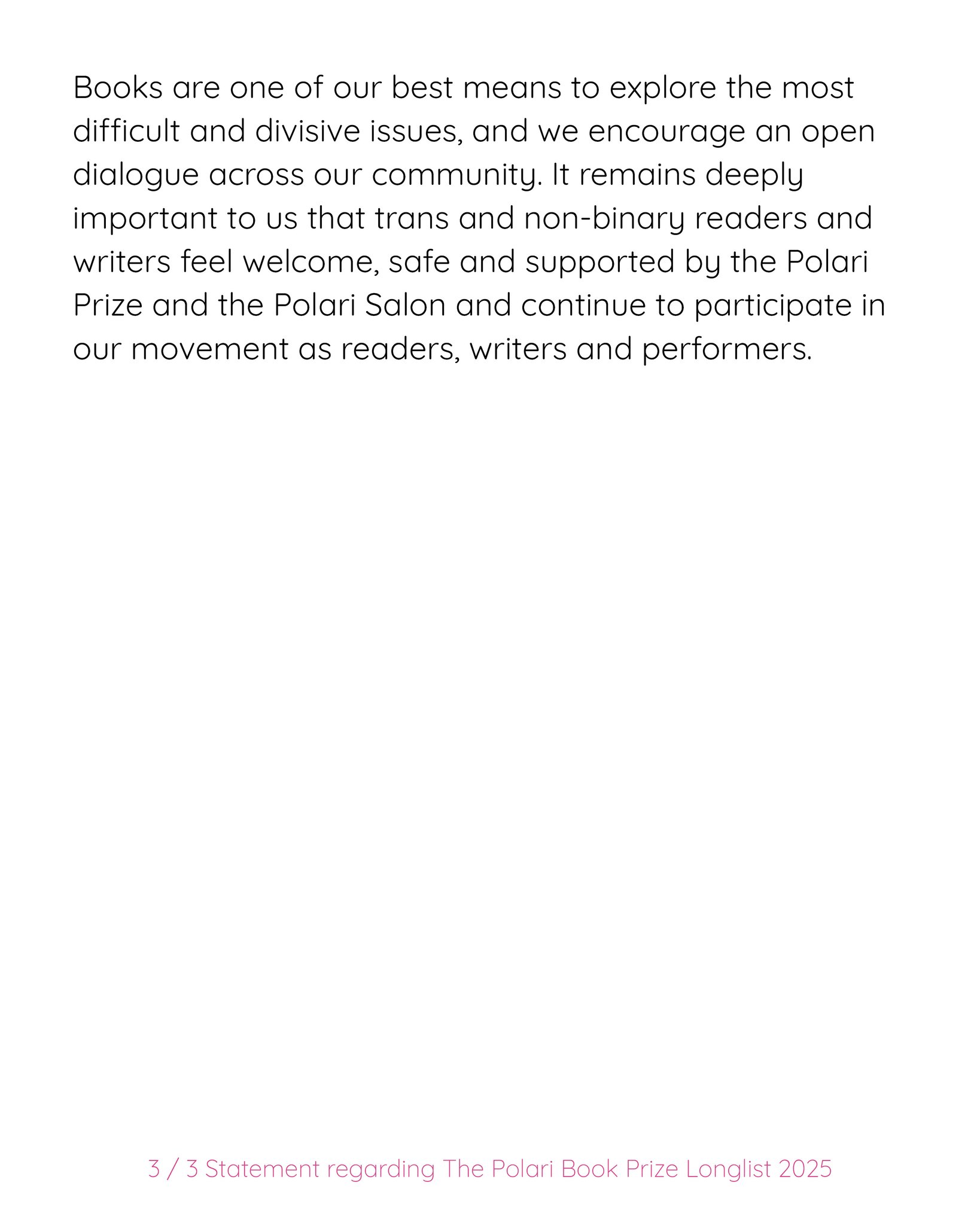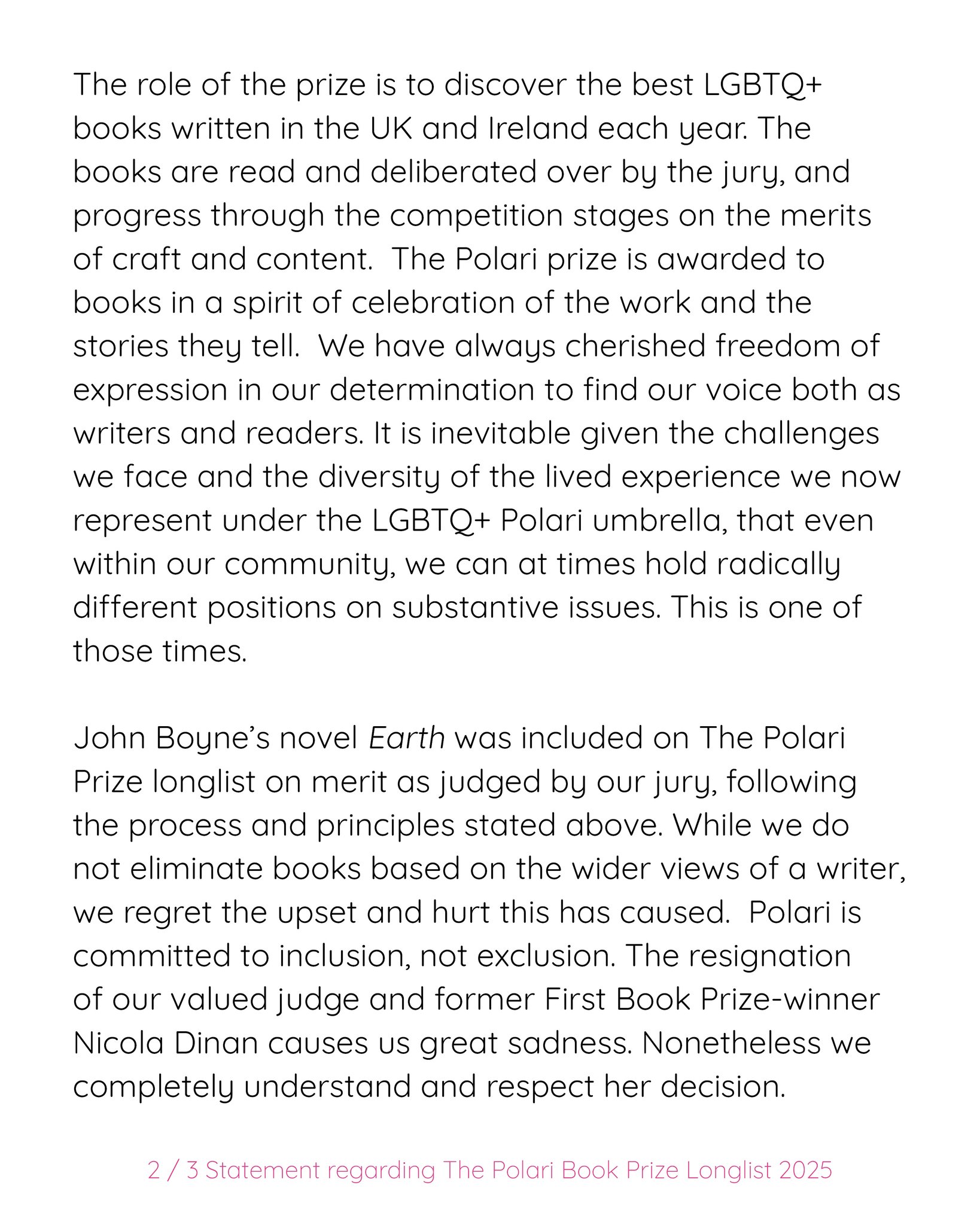 Tsja. Het wordt inmiddels erg vermoeiend dat deze auteurs (Boyne, Rowling) de situatie steeds omdraaien. Rowling ondermijnt systematisch rechten voor transmensen op grote schaal, met veel geld én politieke macht. Zodra men (over het algemeen mensen met véél minder macht, laat staan zo’n breedgehoorde stem) daar iets van zegt of ertegenin gaat, is het ‘bullying’. Teleurstellend om te zien dat Boyne ook zo te werk gaat. Hij heeft zijn standpunt ingenomen wat betreft transrechten (door zichzelf zelfs een TERF te noemen), dat is zijn goed recht. Maar dan moet hij ook leven met de reacties die dit oproept – als auteurs uit de jury of longlist willen stappen, hebben zij dat recht ook.