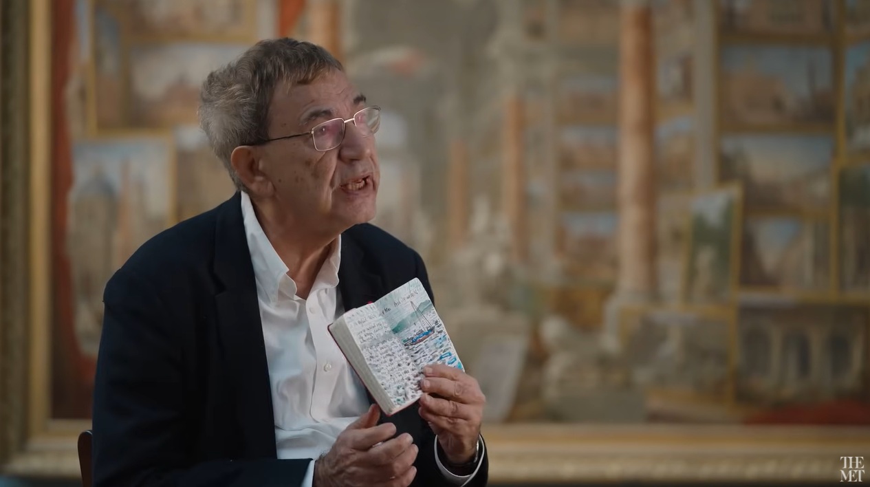 (screenshot via onderstaand filmpje waarin Pamuk een van zijn notitieboeken toont)