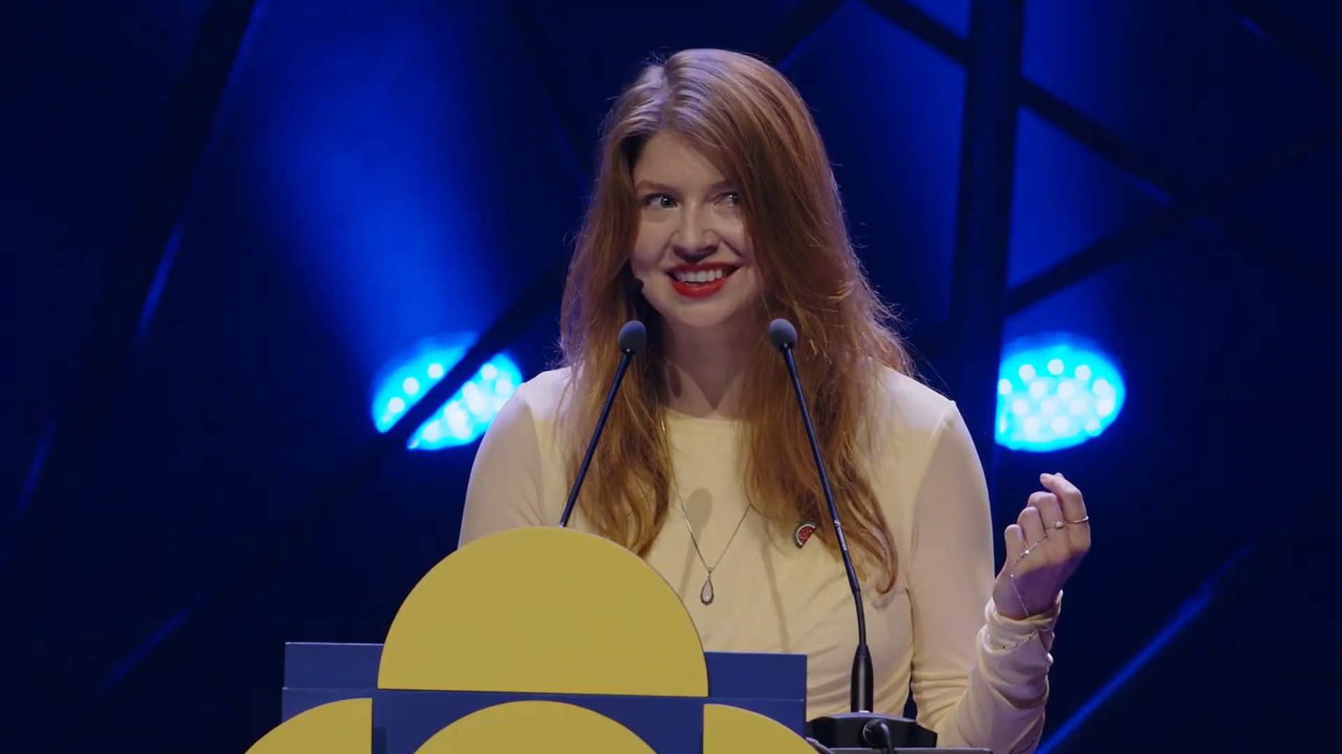 Yentl van Stokkum sloot vorig jaar de Nacht van de Poëzie af, dus mocht ze dit jaar de Grote Zaal openen.