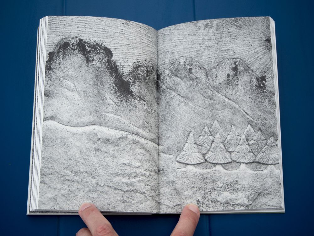 Vervolgens een spread met een foto van een detail van een grafsteen.