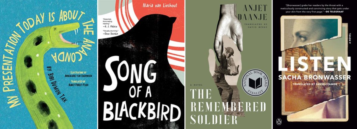 Publishers Weekly heeft naast een algemene top 10, lijstjes voor fiction, mystery/thriller, poetry, romance, sf/fantasy/horror, comics, nonfiction, religion, lifestyle, picture books, middle grade en young adult. In de laatste categorievinden we Song of a Blackbird van Maria van Lieshout (‘it’s a nuanced rumination on the importance of creative expression and art’s ability to foster change and connection’). Bij de categorie middle grade ontdekken we My Presentation Today Is About the Anaconda van Bibi Dumon Tak en Annemarie van Haeringen (‘Tak’s irreverent text recounts critters’ attempts to provoke, cajole, and heckle their peers, while van Haeringen’s mixed-media sketches stylishly depict a chaotic interpretation of a classroom discussion gone rogue.’) Listen van Sacha Bronwasser hoort volgens Publishers Weekly in de categorie mystery/thriller, een ‘slow-burn stunner’. En bij fiction vinden we opnieuw The Remembered Soldier van Anjet Daanje (‘Daanje unfurls a staggering modernist work of love, guilt, and the slippery nature of identity’). Hieronder de complete lijst bij fictie, voor alle lijsten én beschrijvingen klik hier.