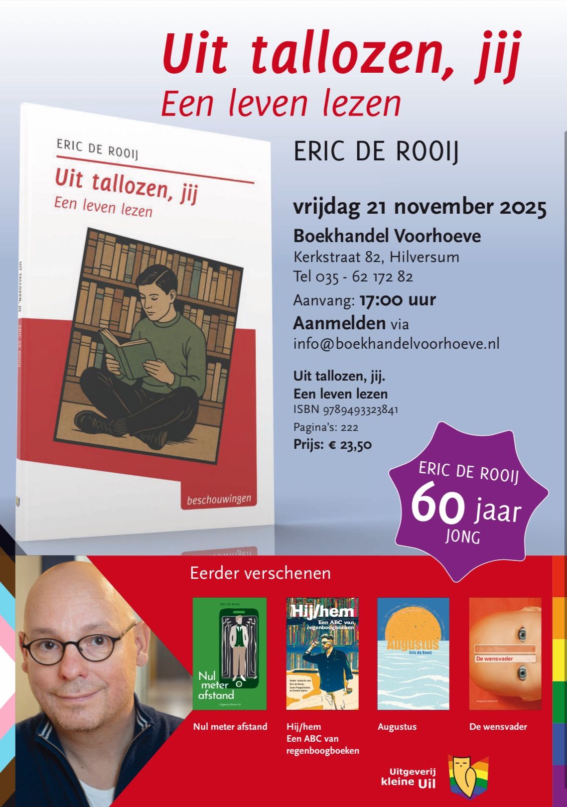 Nieuws: Eric de Rooij presenteert nieuw deel in de Tzum-reeks, Uit tallozen, jij op vrijdag 21 november in boekhandel Voorhoeve