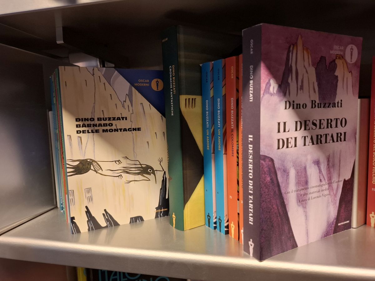 In mei reisden we naar Belluno om de stad van Dino Buzzati (1906-1972) te zien. De inwoners zijn hem niet vergeten. De gevelsteen op het Piazza dei Martiri is een blijvend eerbetoon aan de schrijver. En hij wordt nog steeds gelezen, en uitgegeven, zo bleek toen we naar Buzzati vroegen in boekhandel Campedel aan hetzelfde plein. Recente uitgaven van tal van zijn boeken werden voor ons uitgestald, waaronder uiteraard Il deserto dei Tartari, De woestijn der Tartaren.