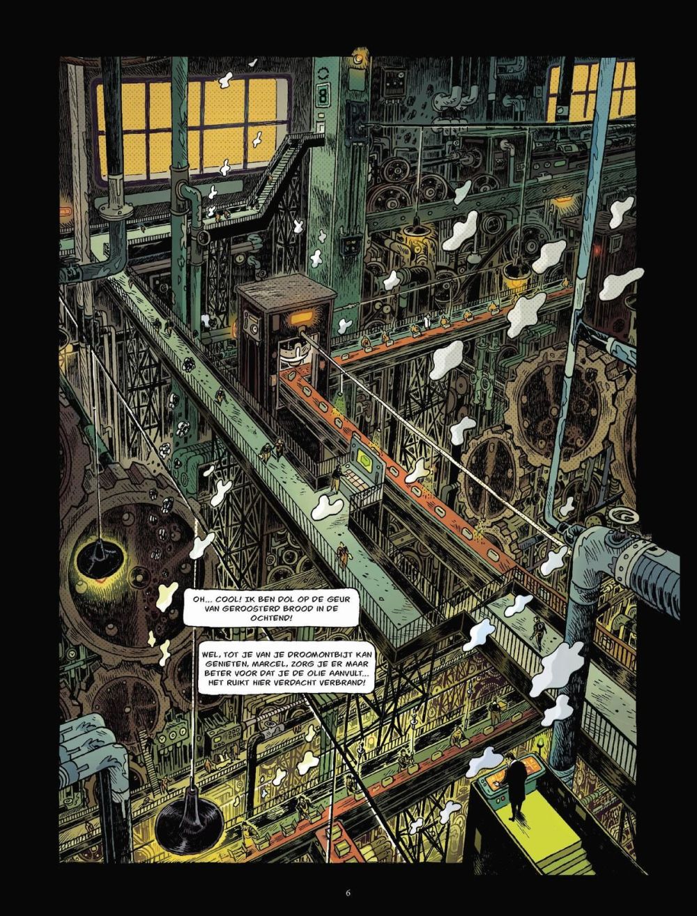 De zwoele blikken is een strip met meerdere gezichten. Het heet een dystopisch verhaal, met hoofdstukken die worden ingeleid door serieuze literaire en filosofische citaten, maar eenmaal aan het lezen is het toch meer een avonturenverhaal met genoeg vreemde en spannende elementen die het een goede jeugdstrip maken. Dat is geen diskwalificatie overigens, maar wel een duiding die het verhaal meer recht doet. Want de lezer die op het achterplat leest dat het boek een aanklacht is tegen het consumentisme en het ultraliberalisme, die mensen van hun essentie berooft, verwacht vast een zwaarder, fatalistischer verhaal.