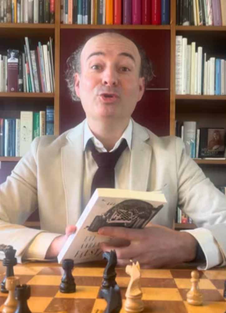 Haha. Overigens, de schaakstelling op de foto: het bord ligt goed, maar de stelling is zeer onwaarschijnlijk, al die lege rijen voor wit, dat zie je zelden. Enfin. Ludiek allemaal.