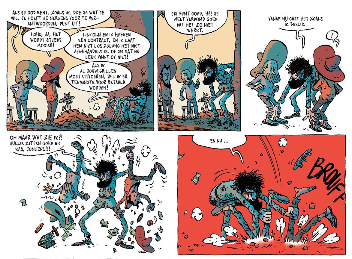 Ach, die arme Lincoln. Hij is een morsige zuipschuit die het leven niet veel aan vindt, maar desondanks door God is uitverkoren om altijd te blijven leven. Dat is in het kort het lot dat Lincoln draagt, voorheen als een cowboy, maar nu als een kwaaie pier in de Europese jaren twintig van de vorige eeuw. In het nieuwe deel van de reeks, dat Geen God, geen meester heet – vrij naar het Franstalige anarchistische adagium Ni Dieu, ni maître – raakt hij verzeild in die verzetsbeweging.