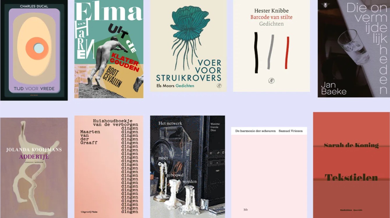 Het is een tikkeltje hard om op de dag van het Boekenbal, waar alle dichters elkaar treffen, de longlist voor De Grote Poëzieprijs bekend te maken, maar het Veerhuis deed het. De volgende Nederlandstalige bundels zijn nog in de race om tot de beste vernoemd te worden: