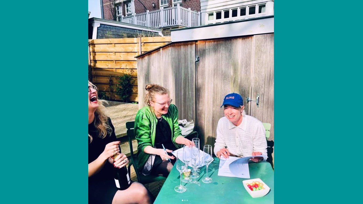 (Afbeelding via Tops’ Instagram, vlnr: acquirerend redacteur Katrijn Van Hauwermeiren, uitgeefdirecteur Romy van den Nieuwenhof en Teddy Tops)
